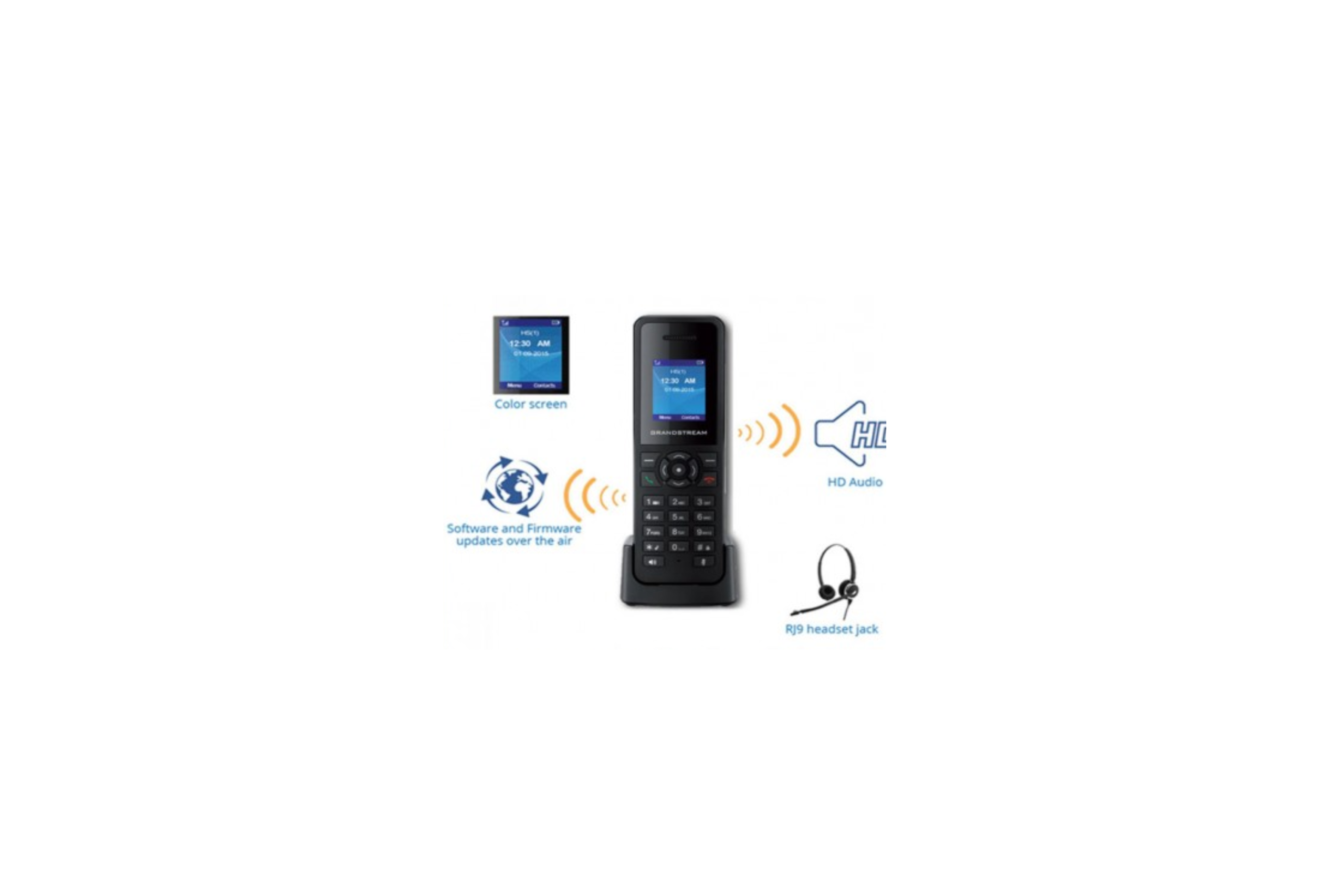 - Â Supported by Grandstream’s DP750 DECT Base Station
